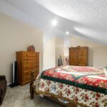 There are two bedrooms and a full bath located on the first level. A private primary bedroom and bathroom is located on the upper level.